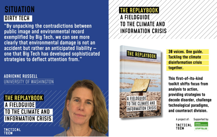 CJMD co-director Adrienne Russell contributed to Tactical Tech’s “The RePlaybook: A Field Guide to the Climate and Information Crisis.” Her essay, Dirty Tech, unpacks the contradictions between the public image and environmental record of Big [...]