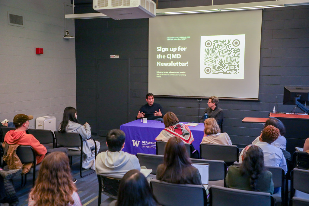 On Jan. 14 at the University of Washington, the Center for Journalism, Media, and Democracy (CJMD) hosted a discussion on political violence in the U.S. with The New Yorker staff writer Benjamin Wallace-Wells. Around 40 to 50 people filled the room, all students, faculty, staff, and community members interested in or studying journalism, communication, political science, and related fields.
