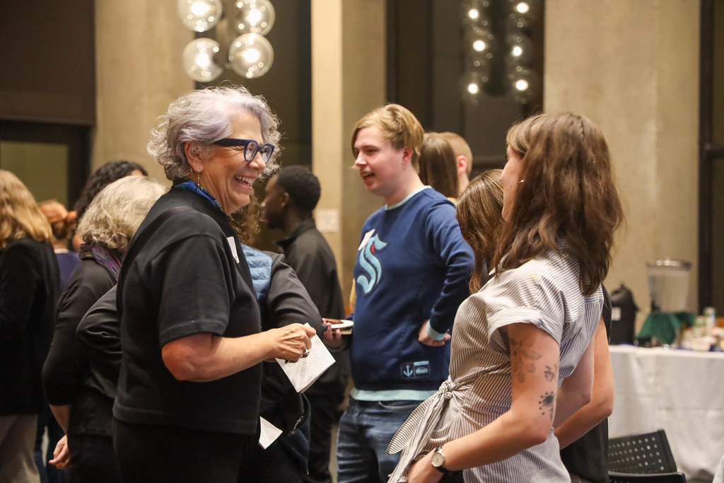 “When we launched this event, it had three aims: Bring students closer to professionals, bring the professionals closer to each other, and to provide a space where people who care about news can get together and feel like we are a community,” said Caley Cook, UW Professor and Journalism and Public Interest Communication Coordinator, who organized the mixer.